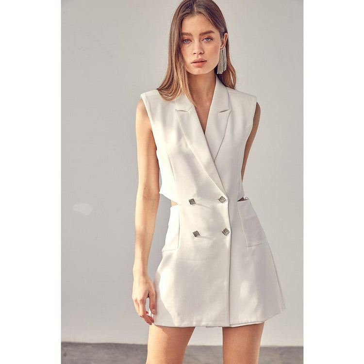 LE LIS Women's Taupe Collared Sleeveless Side Cutout Romper