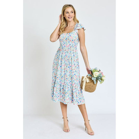 EG FASHION Floral Angel Sleeve Front Tie Maxi Dress
