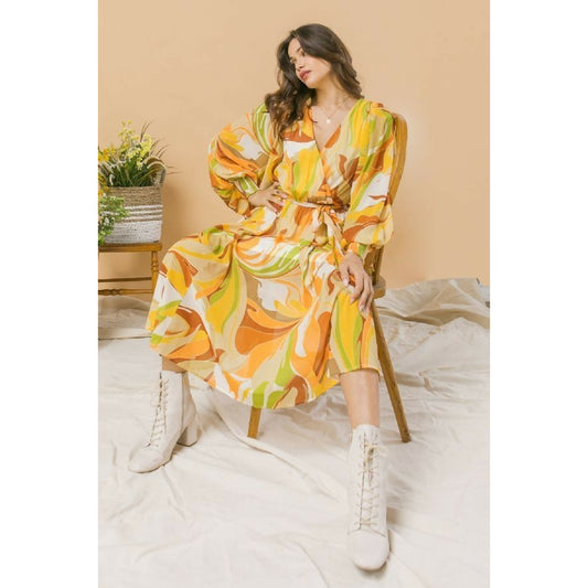 RUE PARIS Women's Classic Autumn Floral Midi Dress