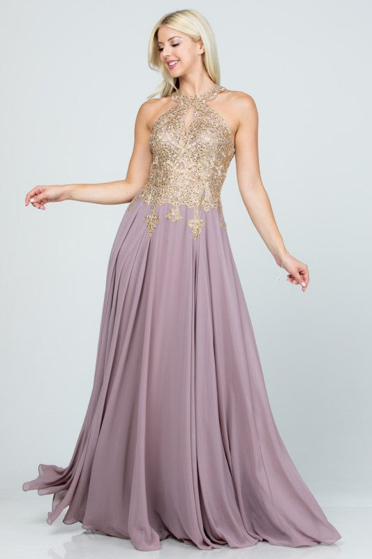 En venteRose Applique Halter Midi Dress