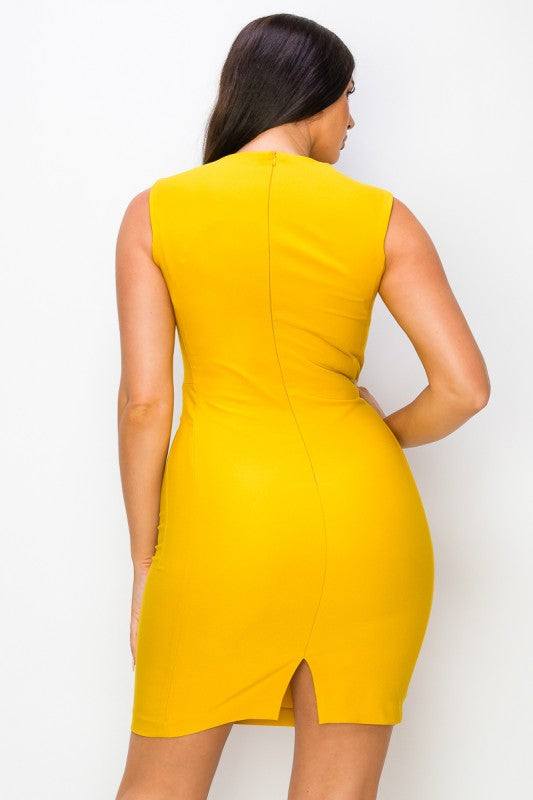 Made in USA Drawstring Ruched Side Rib-knit Dress