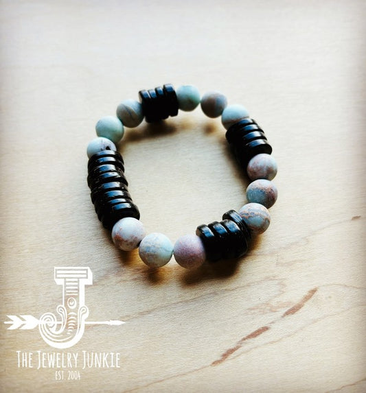 Frosted Aqua Terra and Wood Stretch Bracelet