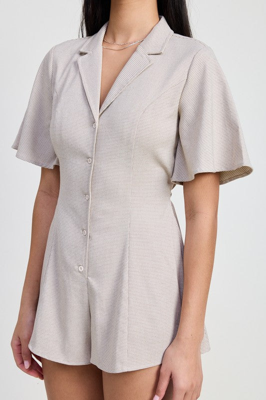 En venteCOLLARED ROMPER WITH WAIST TIE