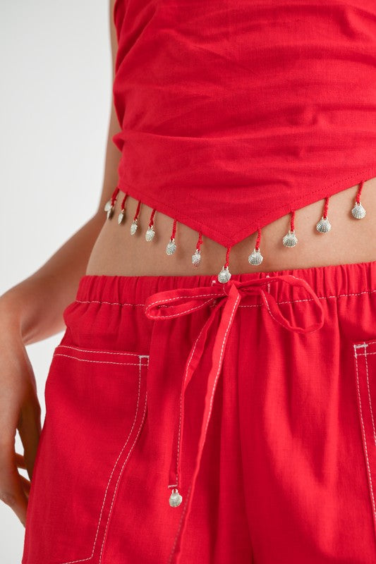 BUTTON UP TOP CROPPED TOP WITH DRAWSTRING