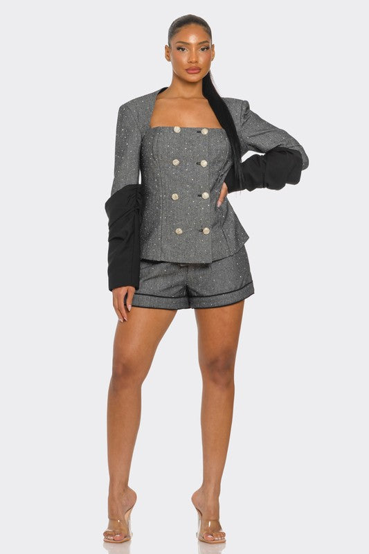 Double-Breasted Tweed Blazer and Shorts Set