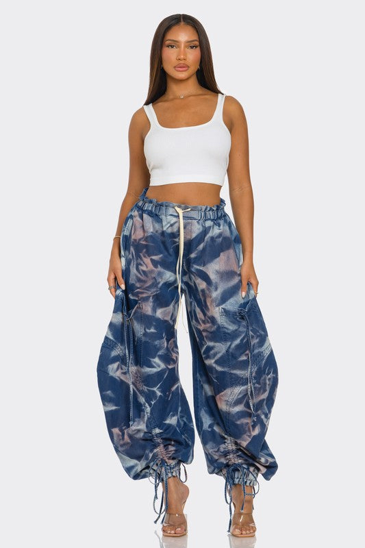 Urban Chic Drawstring Denim Cargo Pants