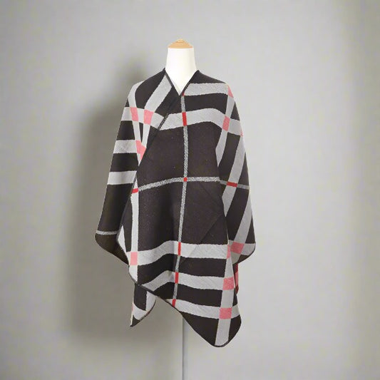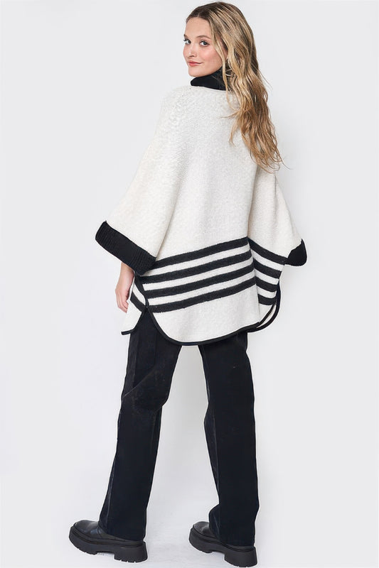 BELLA CHIC Striped Asymmetrical Autumn Poncho
