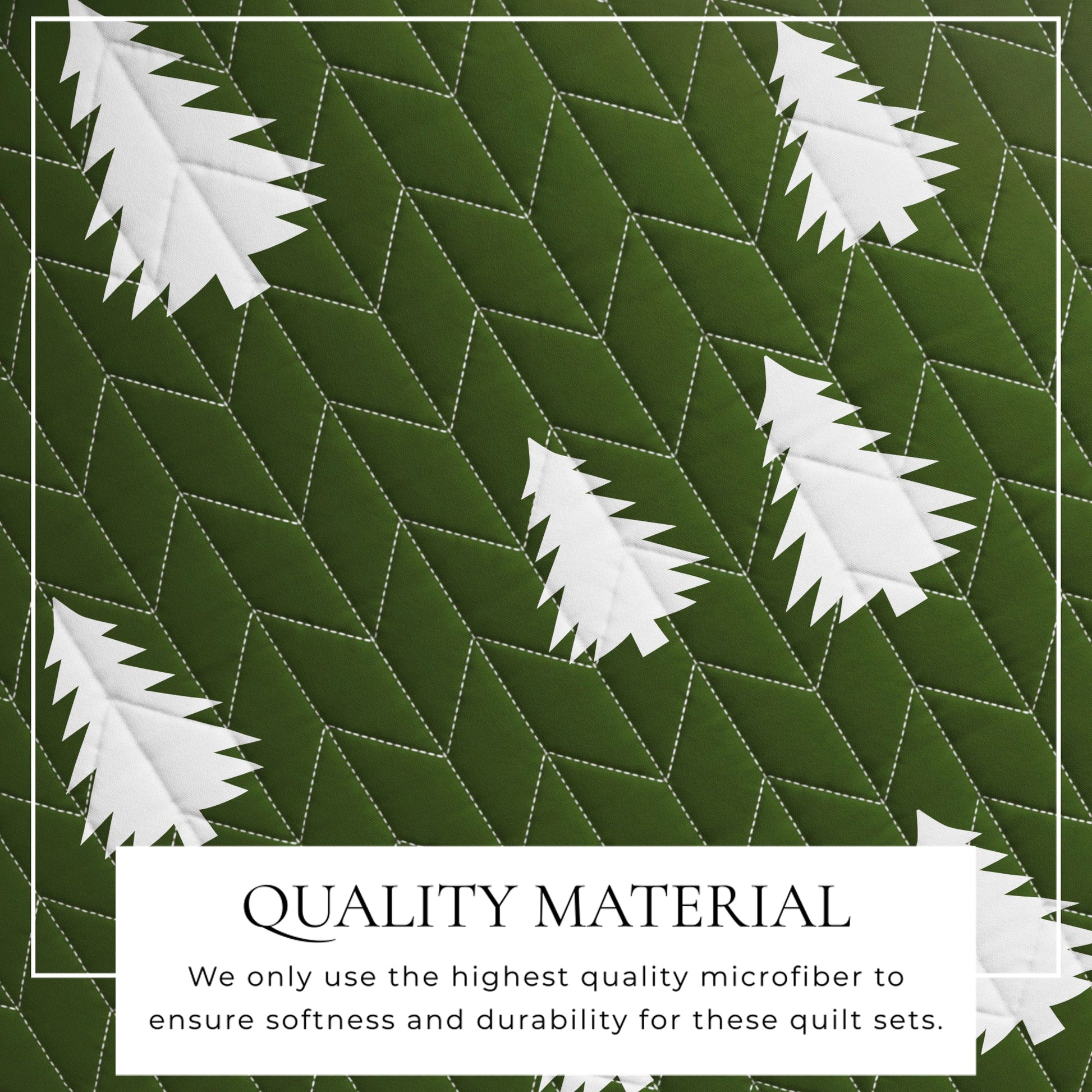 A classic print that will decorate your bed perfectly for the winter season. This quilt set features an olive green set with simple white tree outlines, reminding us of the lovely winter season. With a matching reverse on this quilt set, you can easily change up the design or have a beautiful lodge accent peak through your bed styling. This bedding set is ultra-soft, durable, and perfect for layering with your other winter bedding for the ultimate bed style.