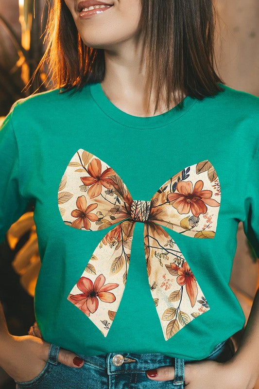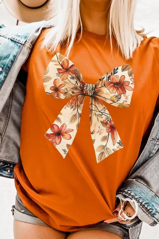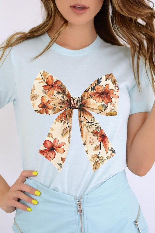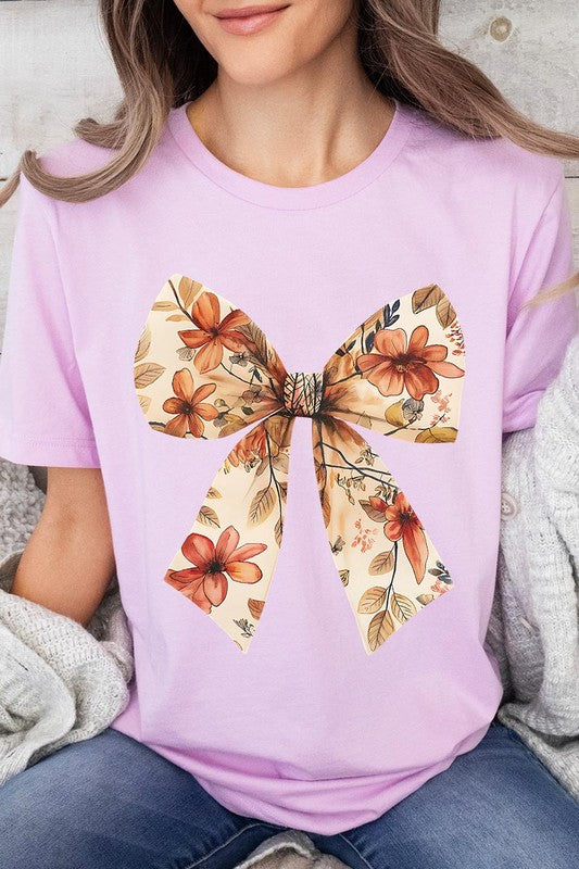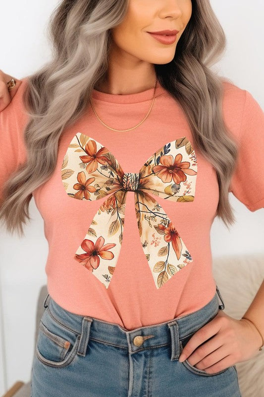 Color-Bear Women's Autumn Bow Graphic Tee with Short Sleeves