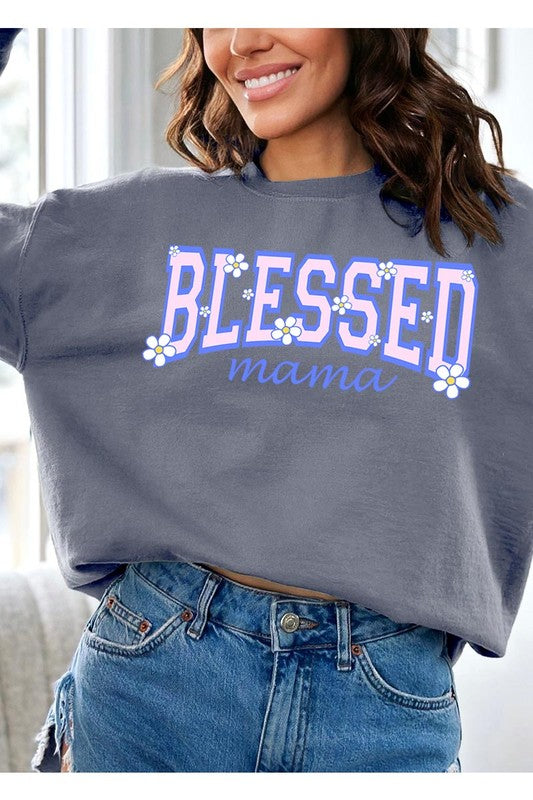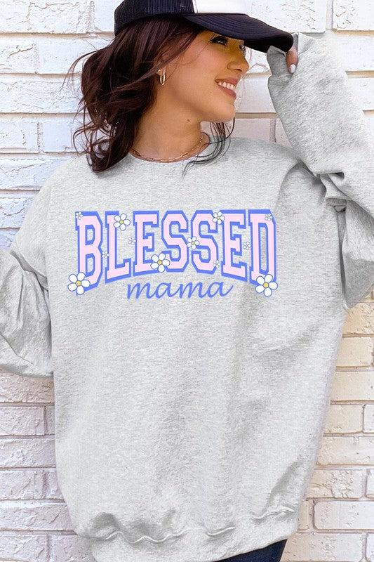 COLOR BEAR Blessed Mama Oversized Graphic Fleece Sweatshirts