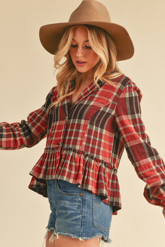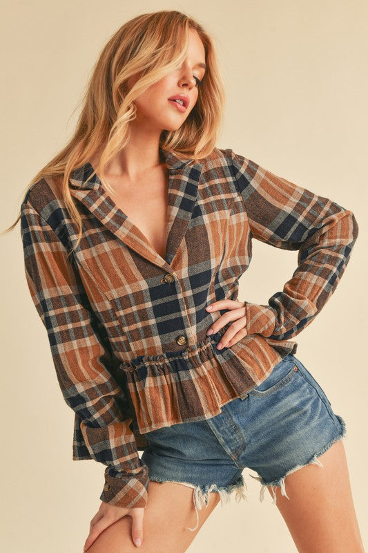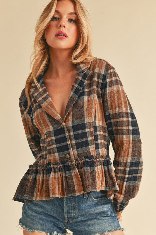 Experience the timeless elegance of the Edwig Jacket, our contemporary interpretation of the classic plaid shirt. Featuring a delicate princess seam and a ruffled bottom hem, this jacket is sure to add shape and style to your wardrobe.
