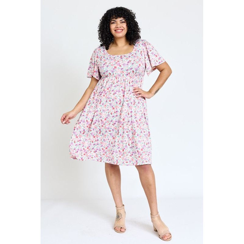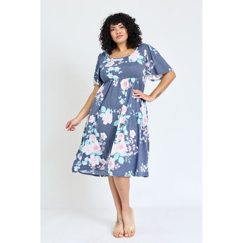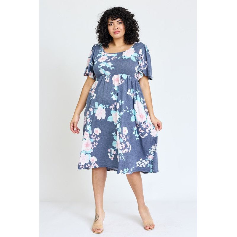 EG FASHION Plus Kimono Sleeve Floral Tea Length Dress
