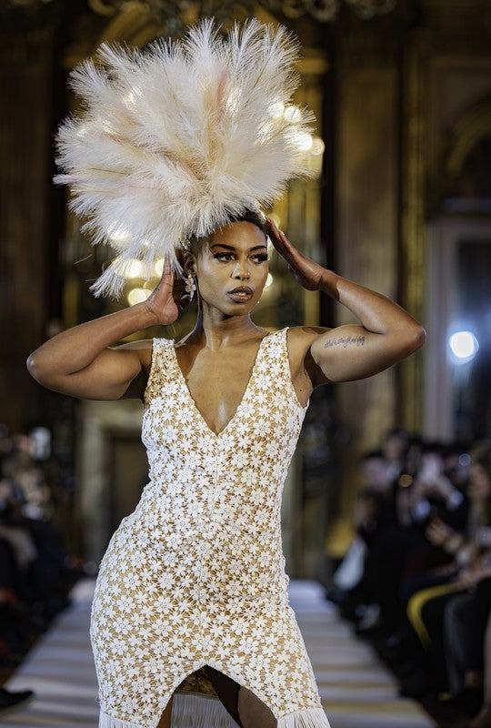 Debuted in Paris Fashion Week! This unique cream-colored dress with tassel details at the bottom, along with the crochet fabric and inner lining, makes it a one-of-a-kind piece. I'm sure you will look stunning wearing it! Complete this ensemble with luscious silver earrings and strappy heels and you are going to feel like every place is your runway.