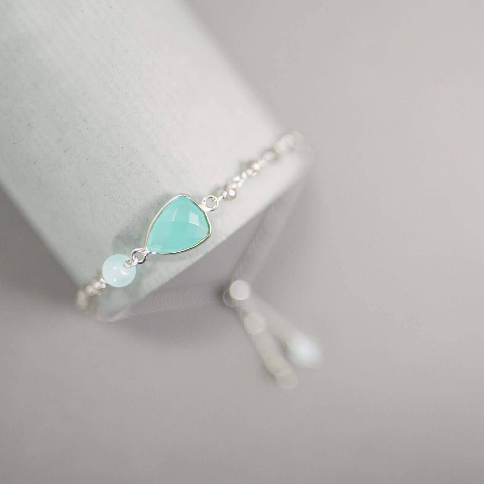 Aqua Chalcedony Adjustable Silver Gemstone Bracelet
