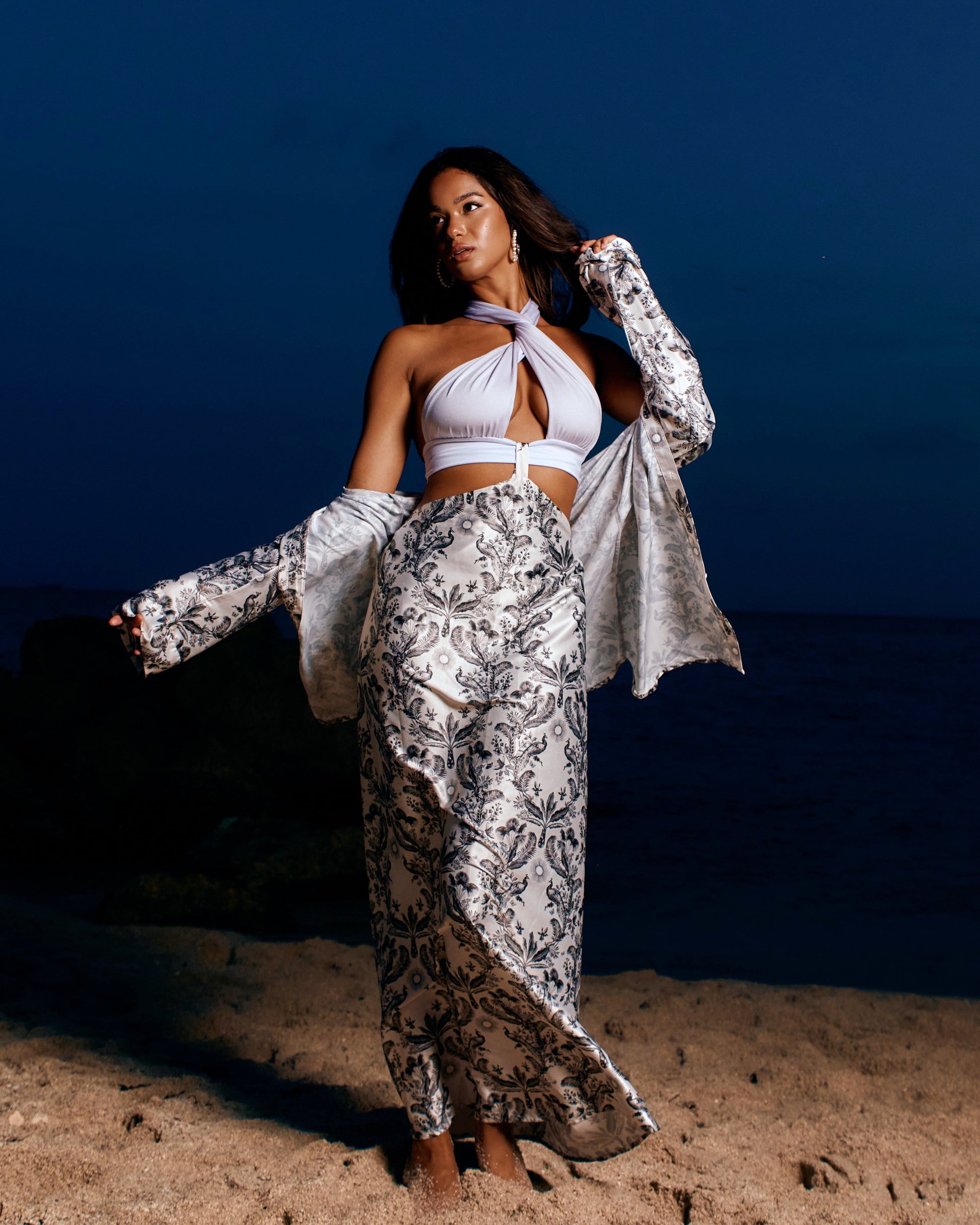 Introducing our newest patent-pending Attachable Maxi Skirt to Dress. This ultra multi-way skirt features a hook mechanism to match back and transform any top into a cohesive dress look. Wear your favorite bikini to a black tie gala, or match this skirt back to our multiway blouses and bandeaus and watch your dress options multiply!