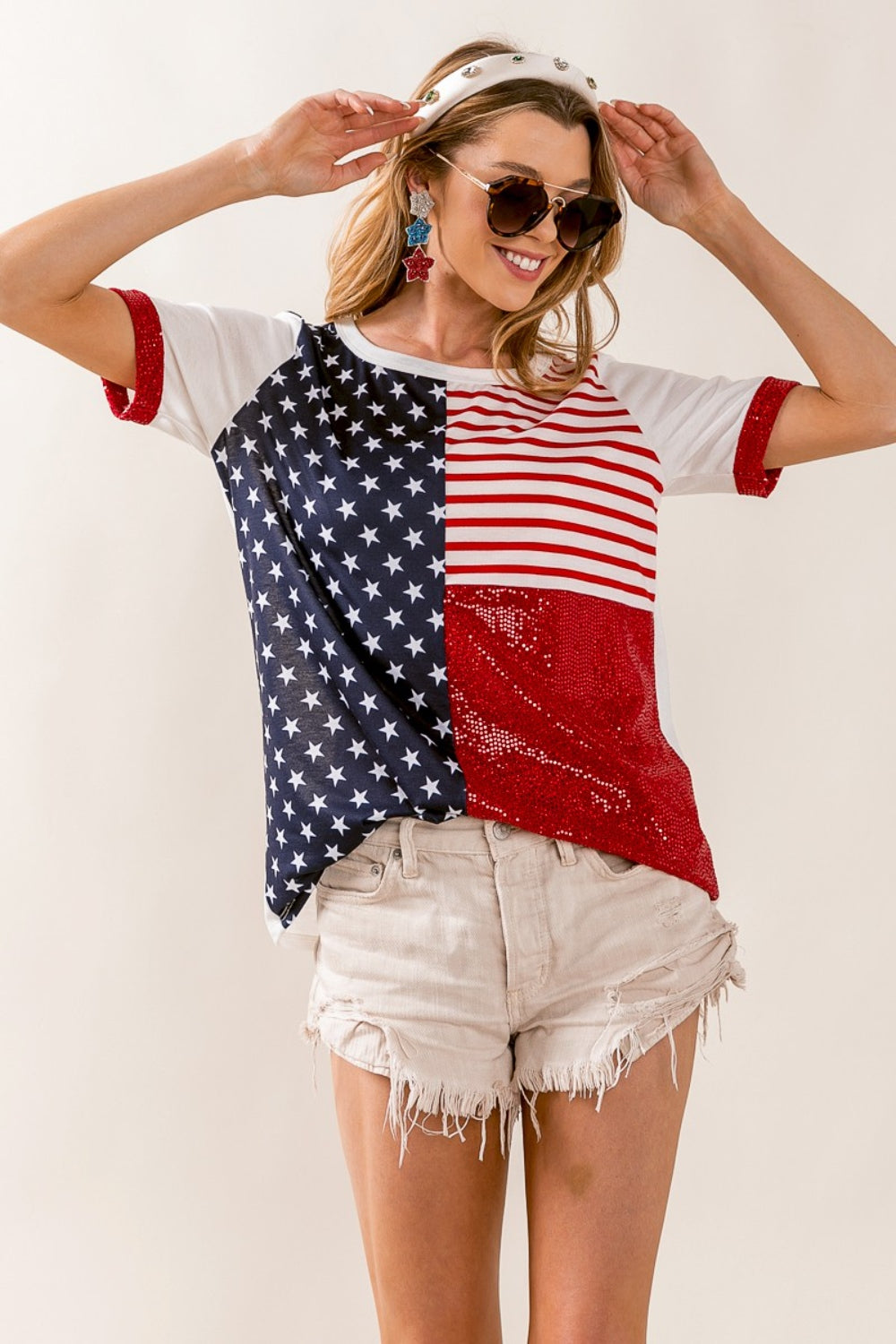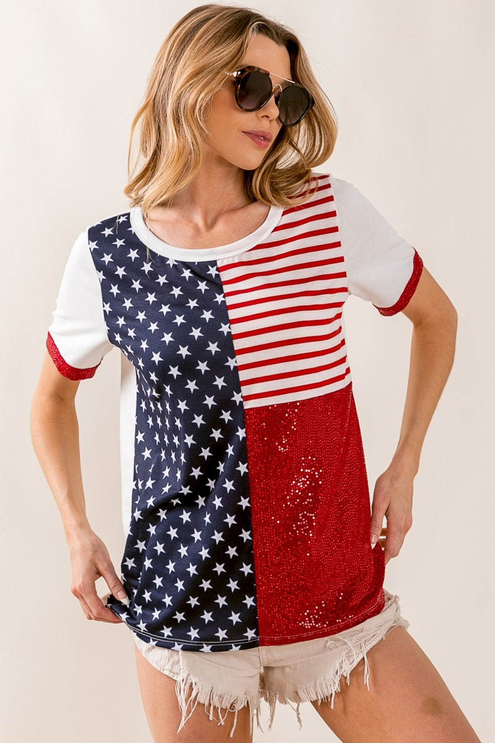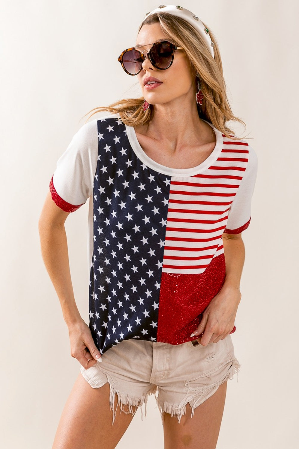 BiBi Star & Stripes Round Neck Short Sleeve T-Shirt