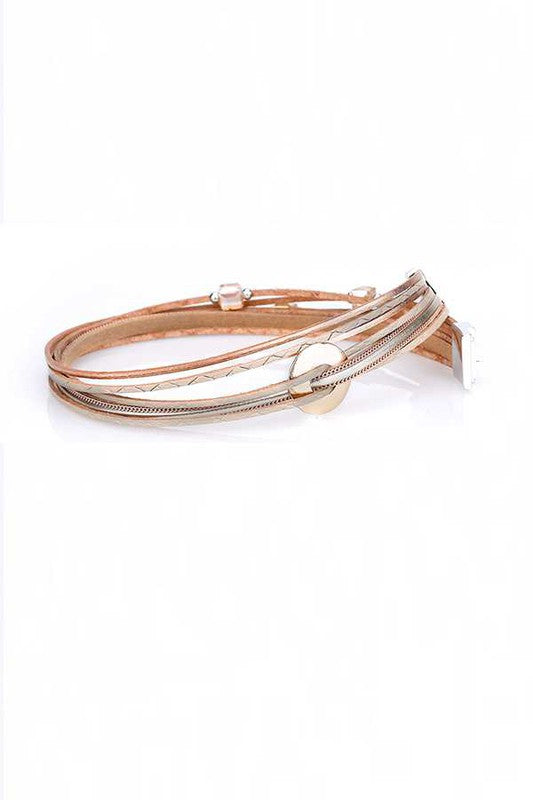 LA JEWELRY Metallic Double Wrap Leather Bracelet