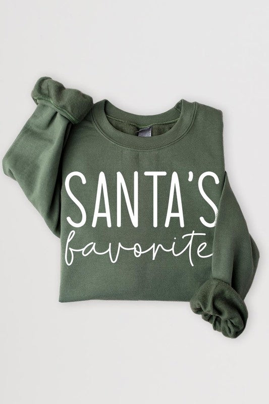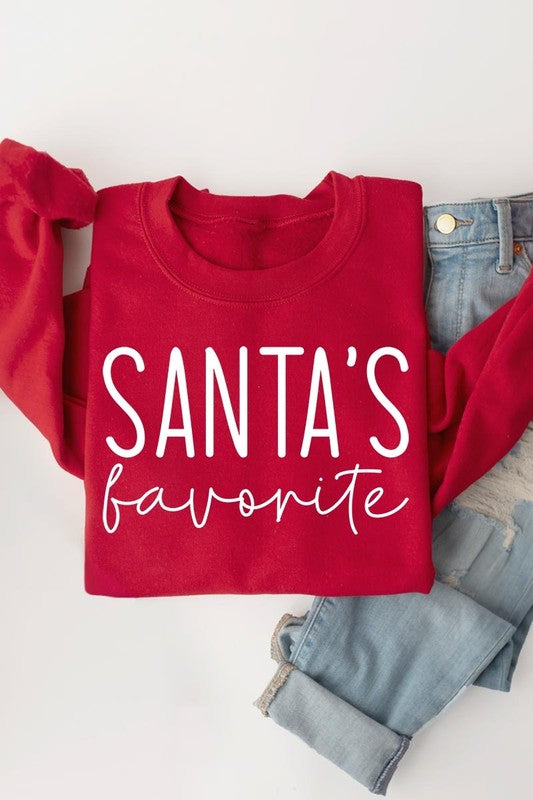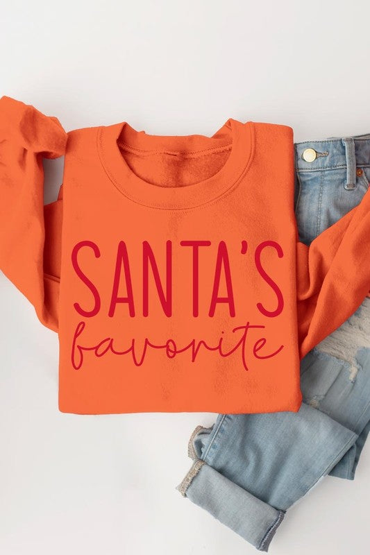 Color-Bear Women's "Santa's Favorite" Christmas Graphic Fleece Sweatshirts