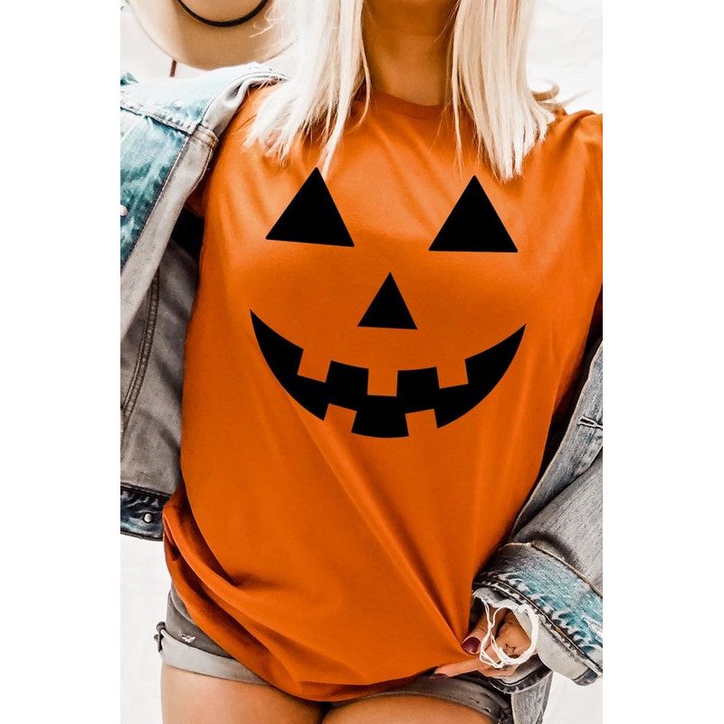 Rock the night with this spooktacular JACK-O-LANTERN Halloween T-shirt! Made to be a statement piece, its short sleeves and graphic design will make heads turn (just like a carved pumpkin).