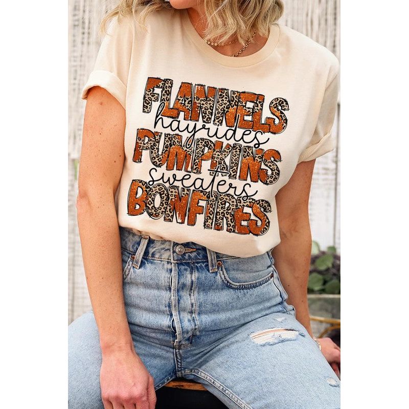 COLOR BEAR " Flannels, Pumpkins, Bonfire" Thanksgiving Fall Graphic T-shirt