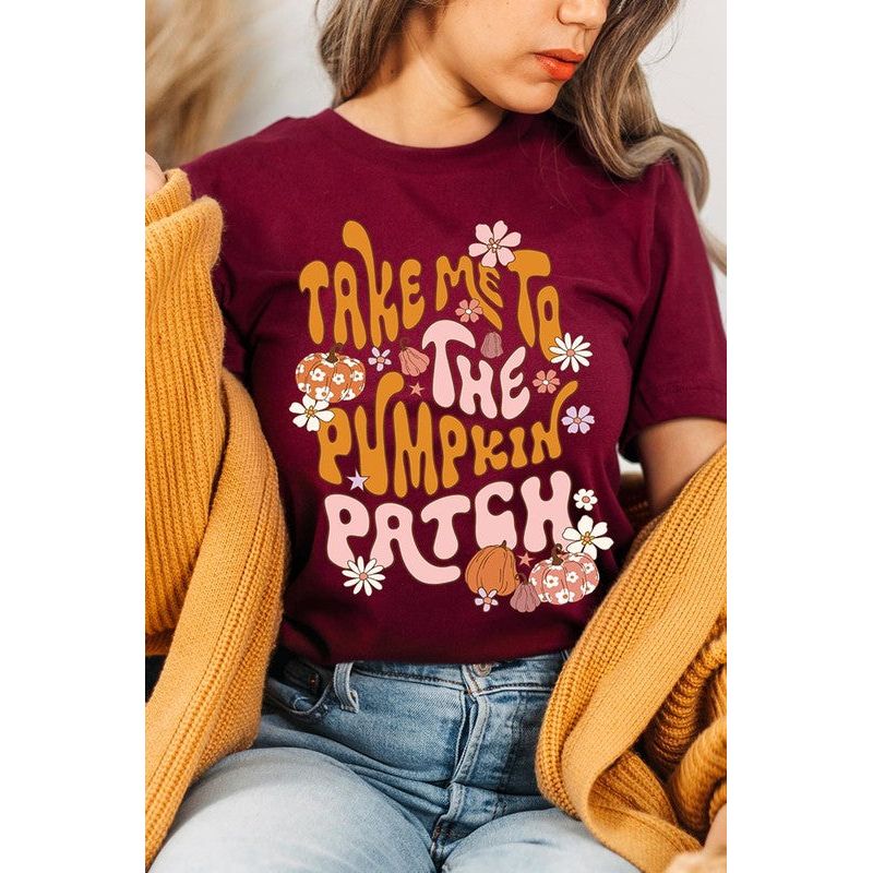 Add some autumn vibes to your wardrobe with our "Take me to the Pumpkin Patch" Graphic T-shirt! This fun and quirky shirt features a festive fall graphic that is sure to make you stand out. Perfect for pumpkin patch adventures or cozy bonfires, this tee is a must-have for the season.